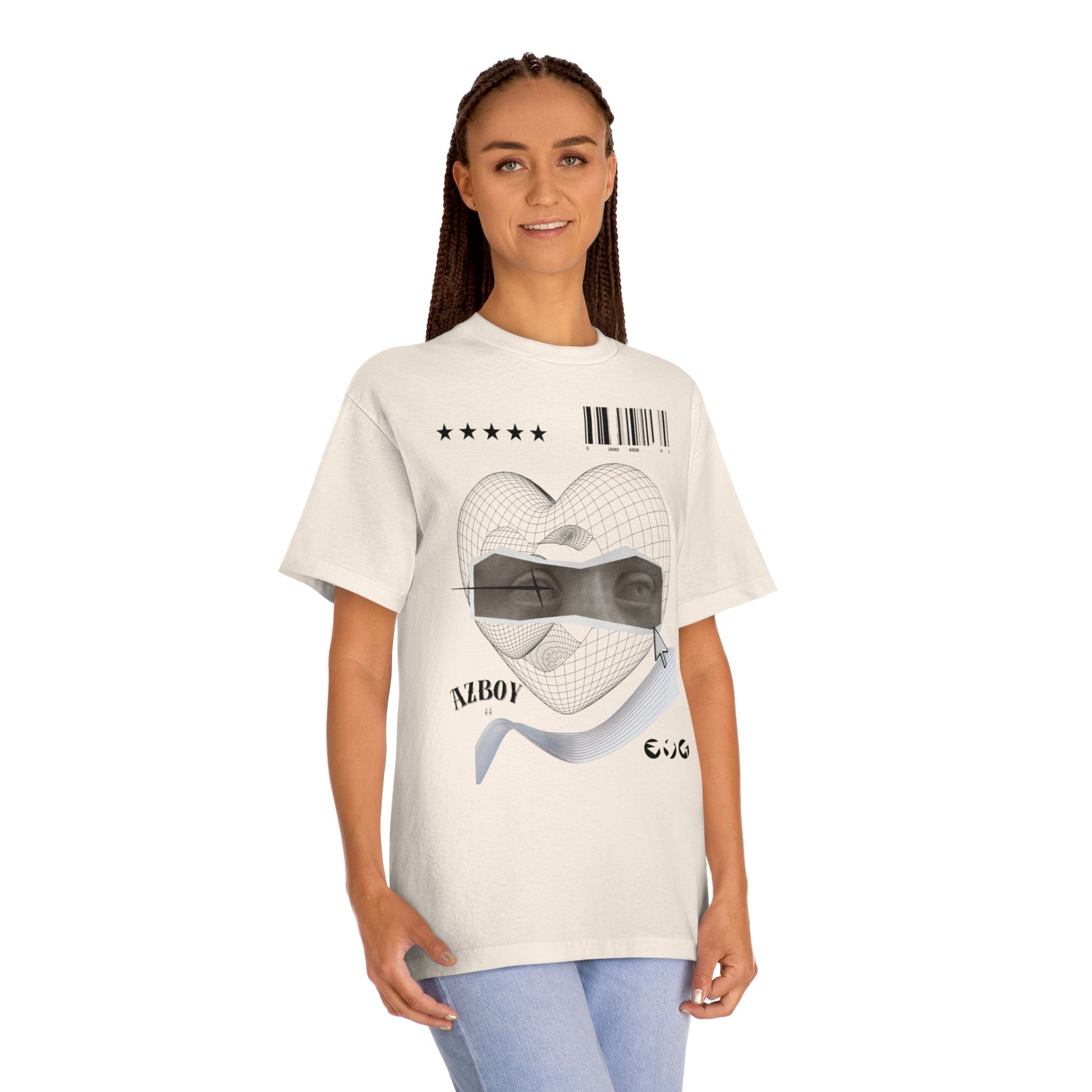 Artistic AZBOY Tee with Heart Design, a trendy t-shirt for casual wear, perfect as a gift for art lovers and streetwear fashion enthusiasts. This tee gives off a creative and stylish vibe, making it a versatile addition to anyone's wardrobe. Ideal for everyday wear or as a standout piece for special occasions and celebrations.