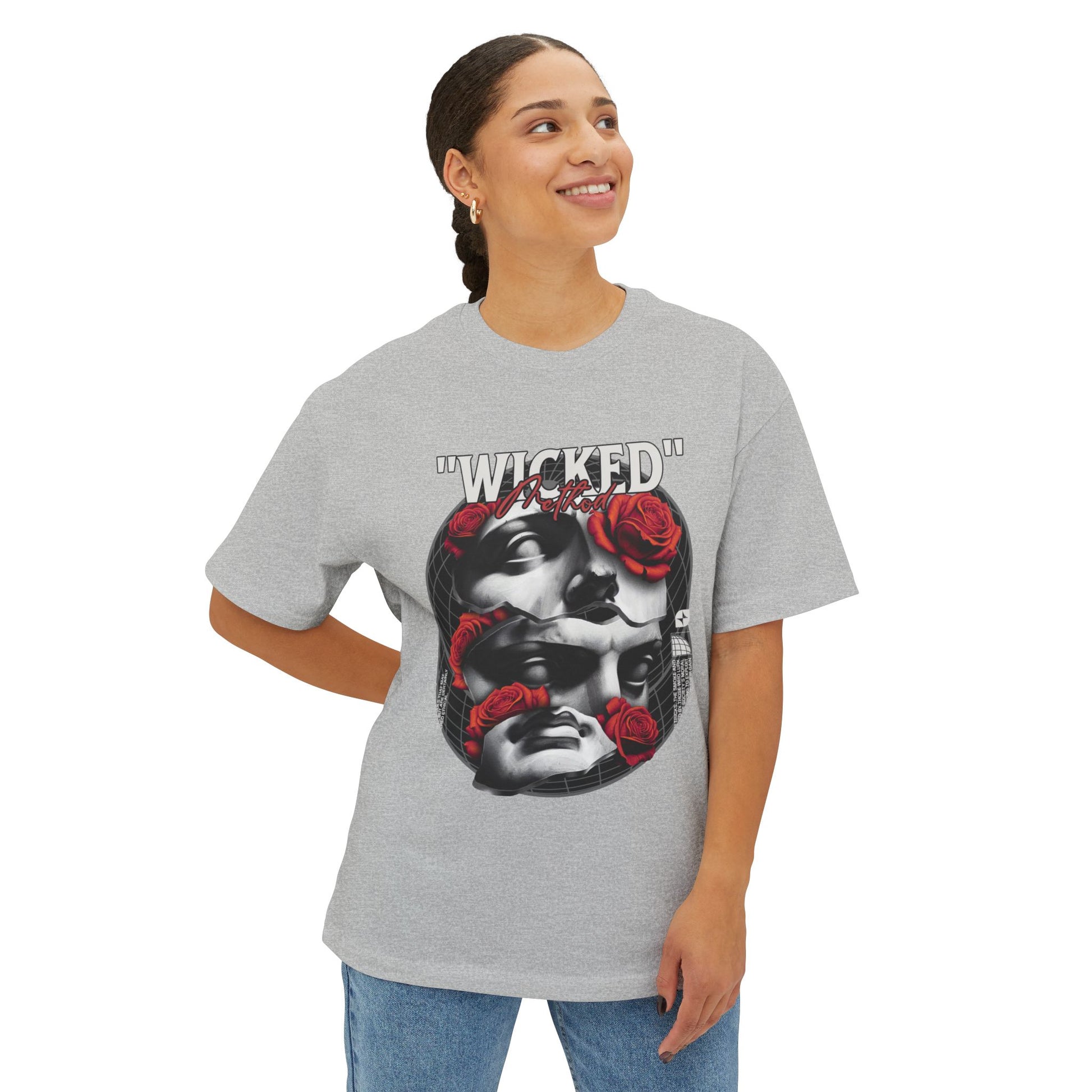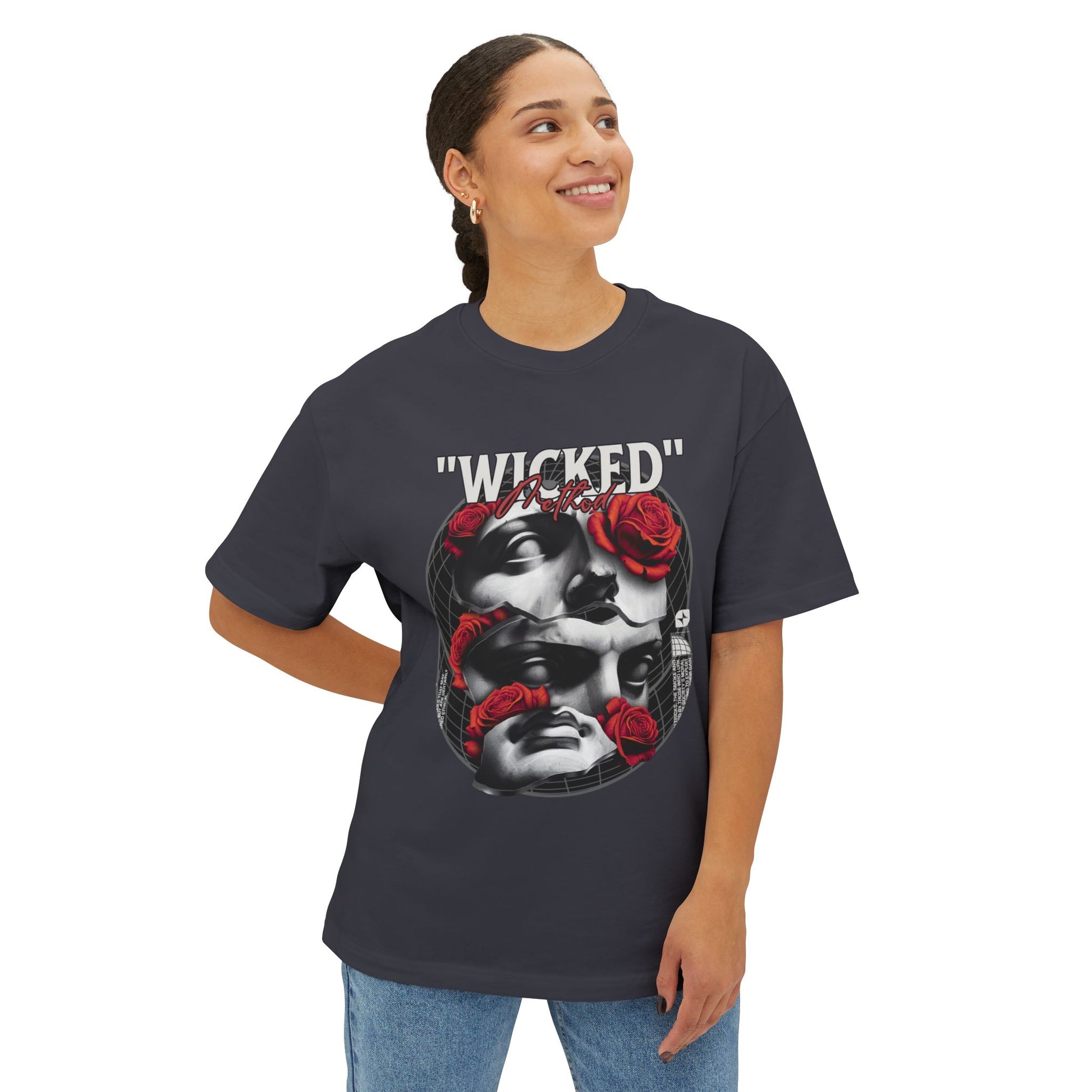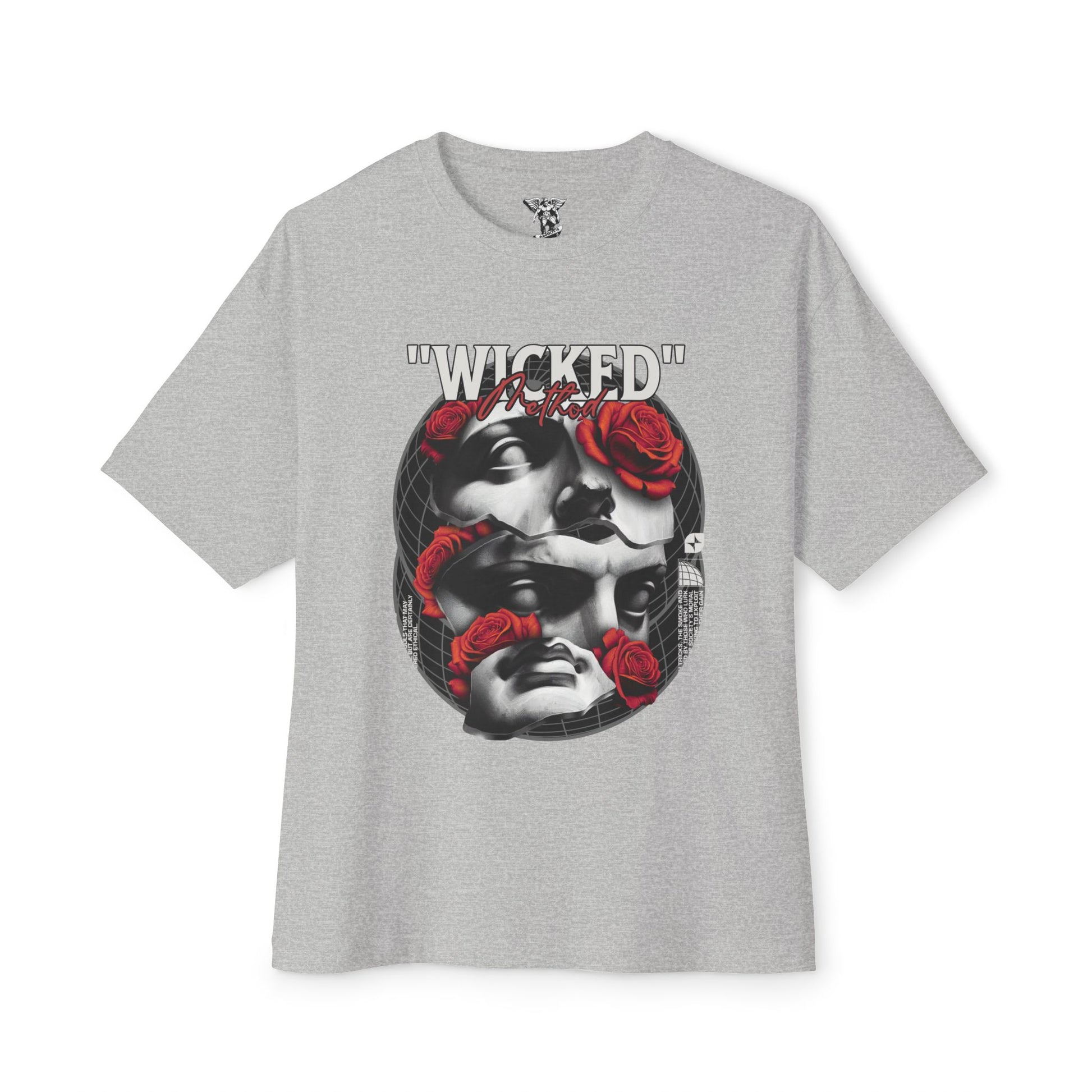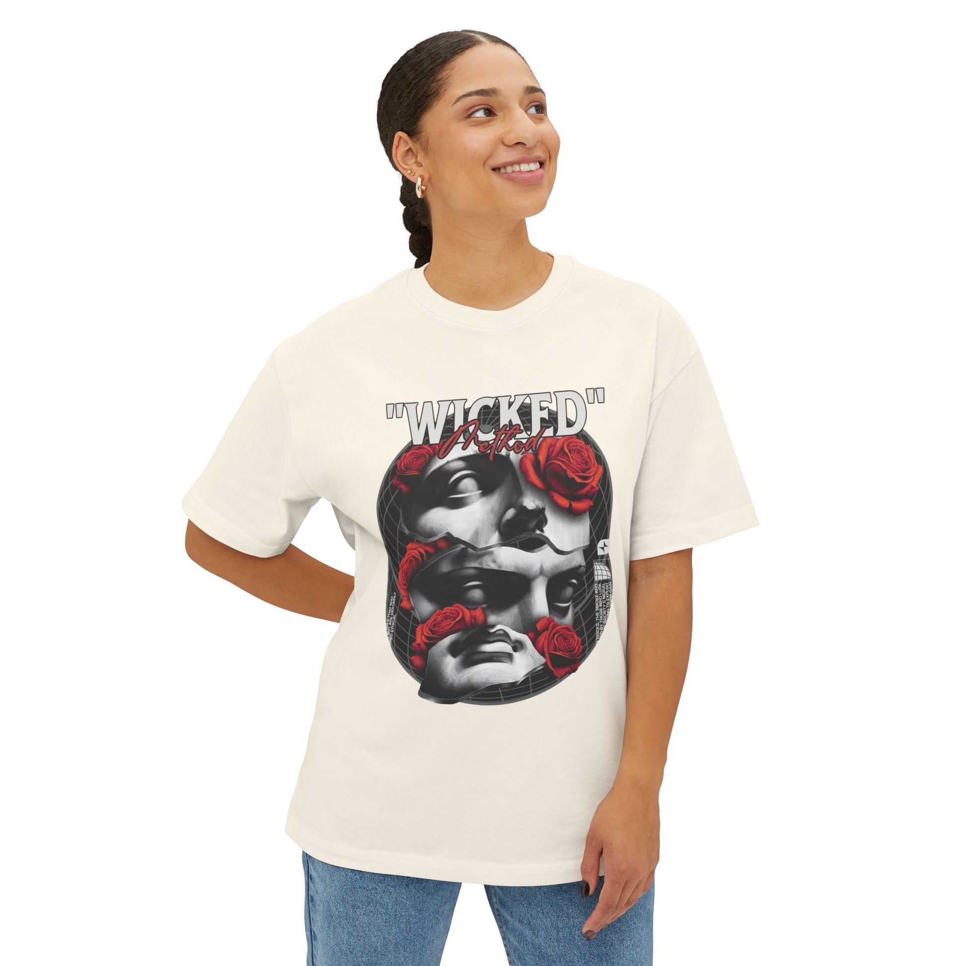Wicked Floral Oversized Tee perfect for casual streetwear in the summer. Featuring a striking rose design, this unisex fashion top offers a relaxed fit and feel. It is relevant to those looking for a bold graphic tee to rock this season.
