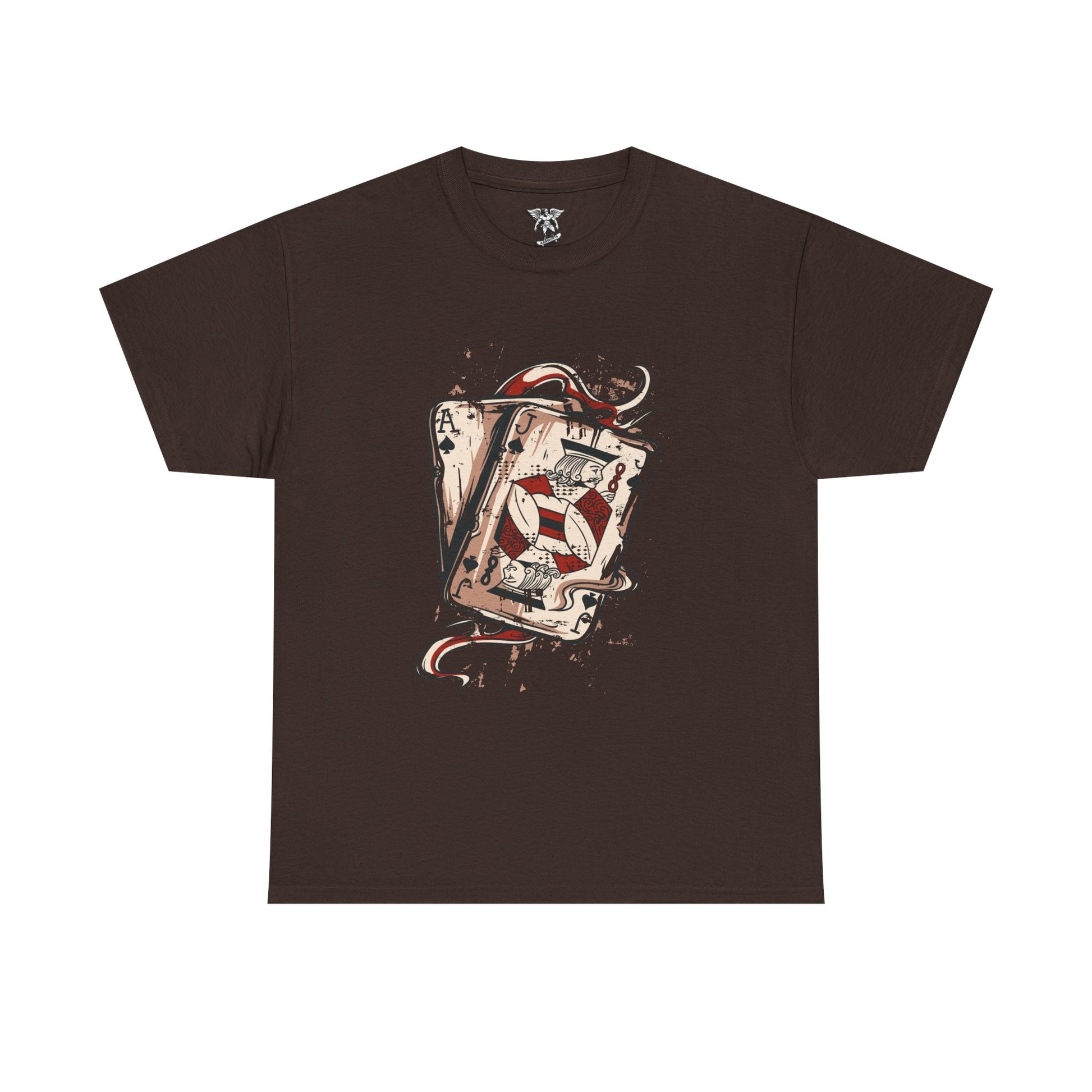 Playing Card Tee, perfect for gamers, poker nights, casual wear, and gifts. Gives a fun and playful vibe, suitable for adults. Relevant for celebrations, game nights, and casual events.
