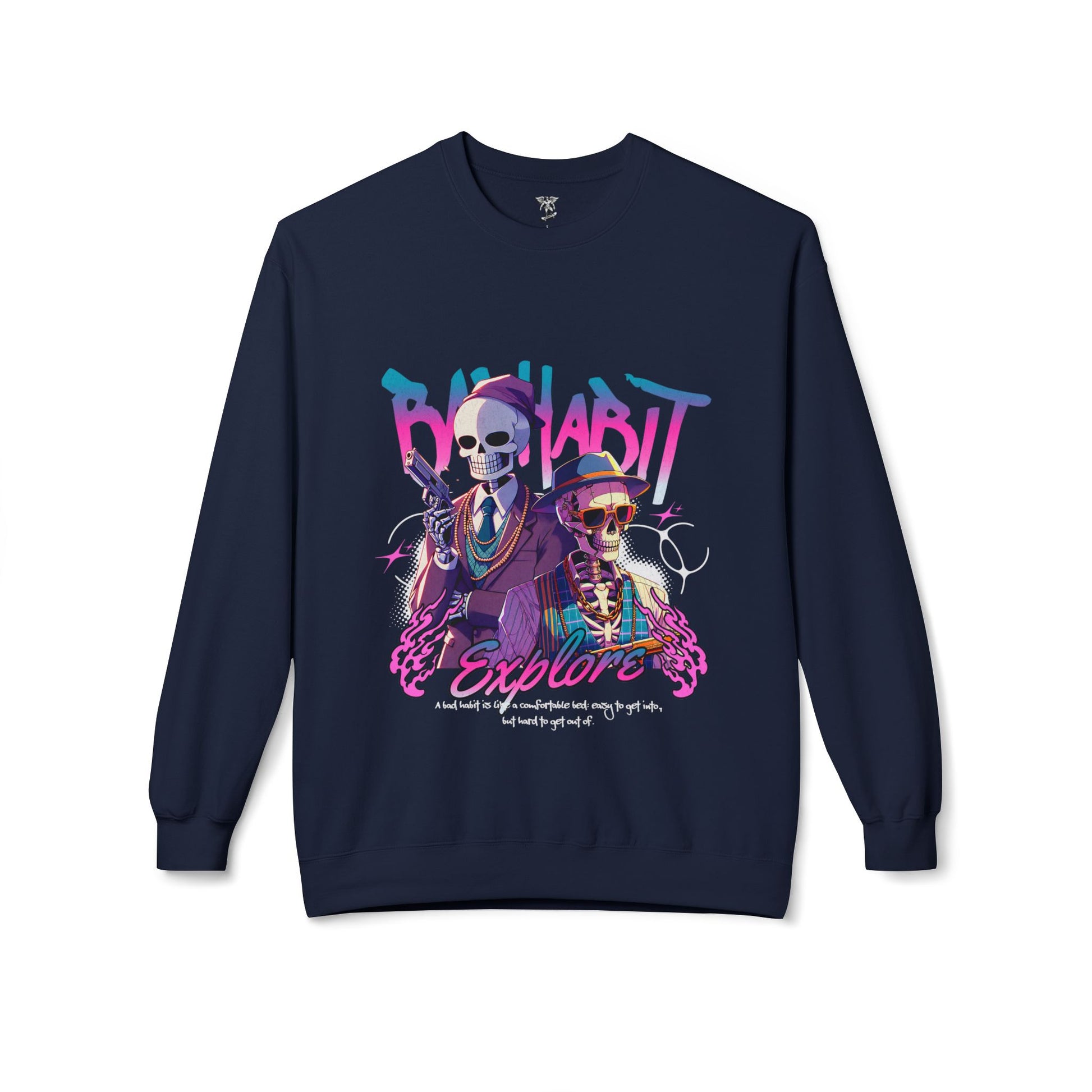 Vibrant Graphic Crewneck Sweatshirt, Unisex Gift for Gamers, Hip-Hop Style, Trendy Streetwear, Unique Casual Wear. Perfect for those who love gaming and streetwear fashion. Ideal for casual everyday wear or as a statement piece.